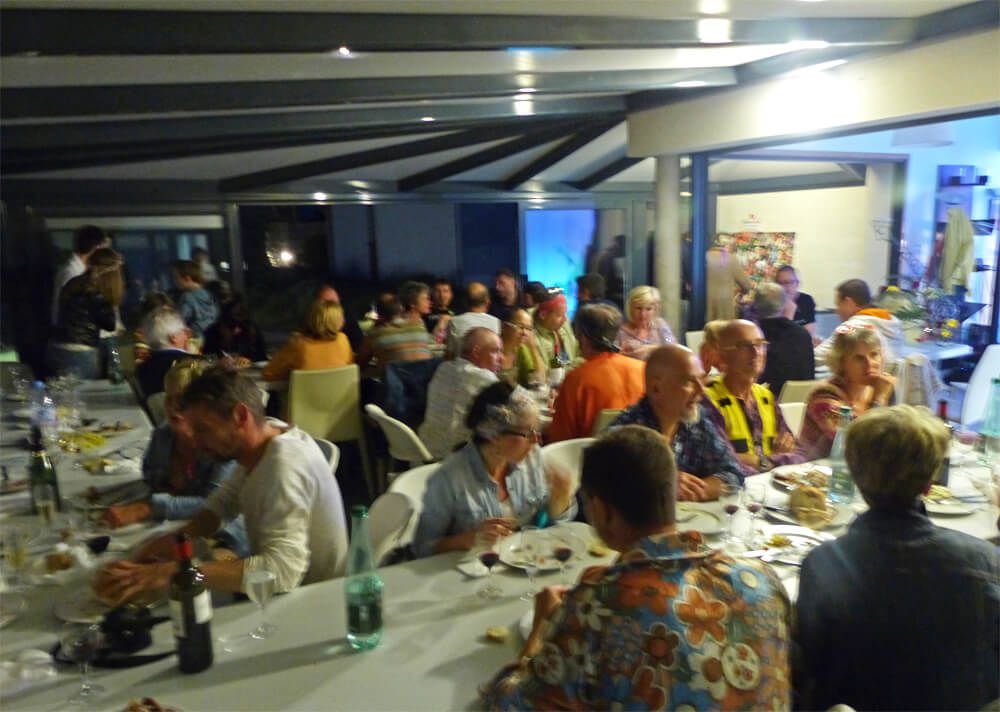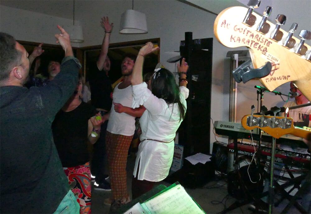 La salle de réception à Baden accueille avec bonheur tous ces « hippies » : un coin repas et un coin dédié à la musique et danse.. L’ambiance est survoltée jusqu’à une heure très avancée!