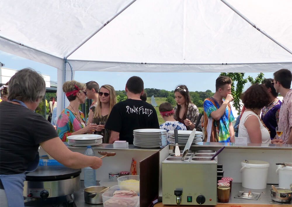 Tous les ingrédients pour une fête d’anniversaire réussie sont réunis, à commencer par les invités qui sont tous logés sur place en appartements et en studios, ce qui permet de jouer les prolongations pendant un long week-end dédié aux années 60, sur le thème « hippie »!