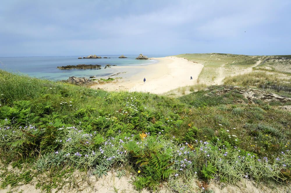 La Pointe En Tal, l’un des caps de l’île, est célèbre pour sa plage convexe, très rare en Bretagne.