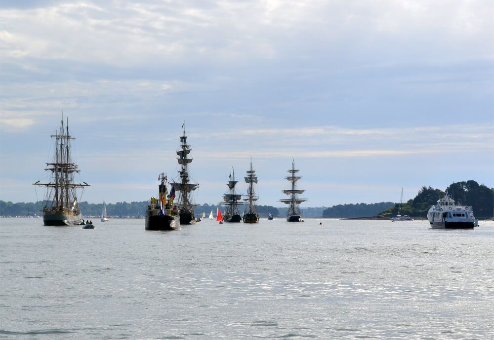 La flotte est partie de Port-Navalo, puis a rejoint la flotille des Grands Voiliers au large de Méaban. Un magnifique spectacle offert par une impressionnante armada !